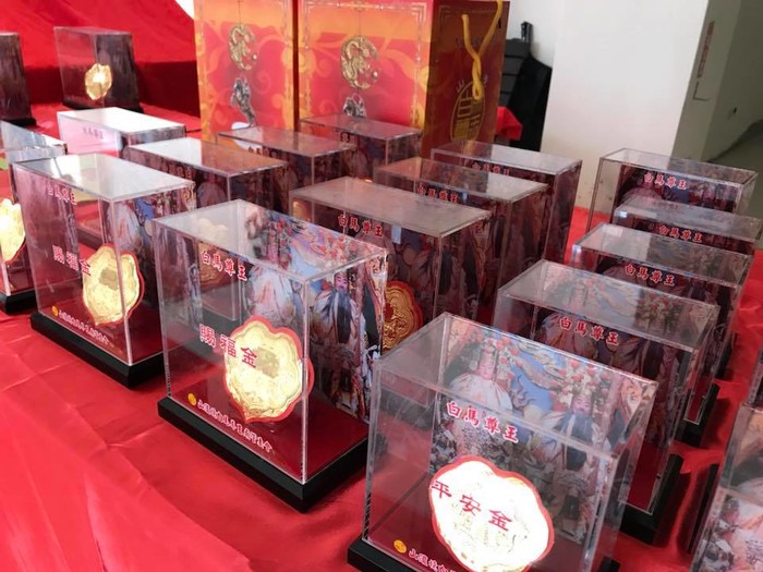 一.本廟管會經請示白馬尊王,得以提供由各界信士所敬獻給白馬尊王之金牌共計59面 (鎮宅金19面.賜福金20.平安金20面) ,並提撥白馬尊王廟香油金10萬元為發財母金(發財母金、每封最高金額1000元至600元)。