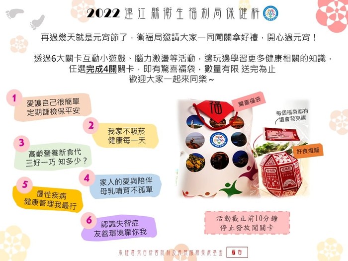 衛福局元宵快閃闖關活動 --閱讀人次 : 1037
