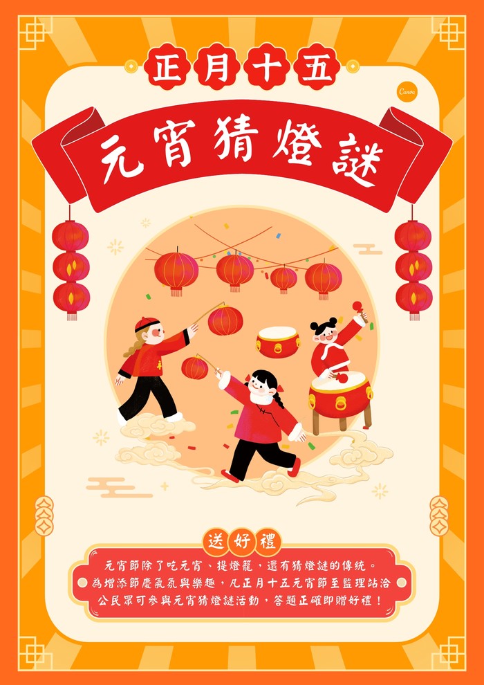 為增添節慶氣氛與樂趣,凡正月十五日元宵節至監理站洽公民眾,可參與元宵節猜燈謎活動,答題正確即贈精美好禮!