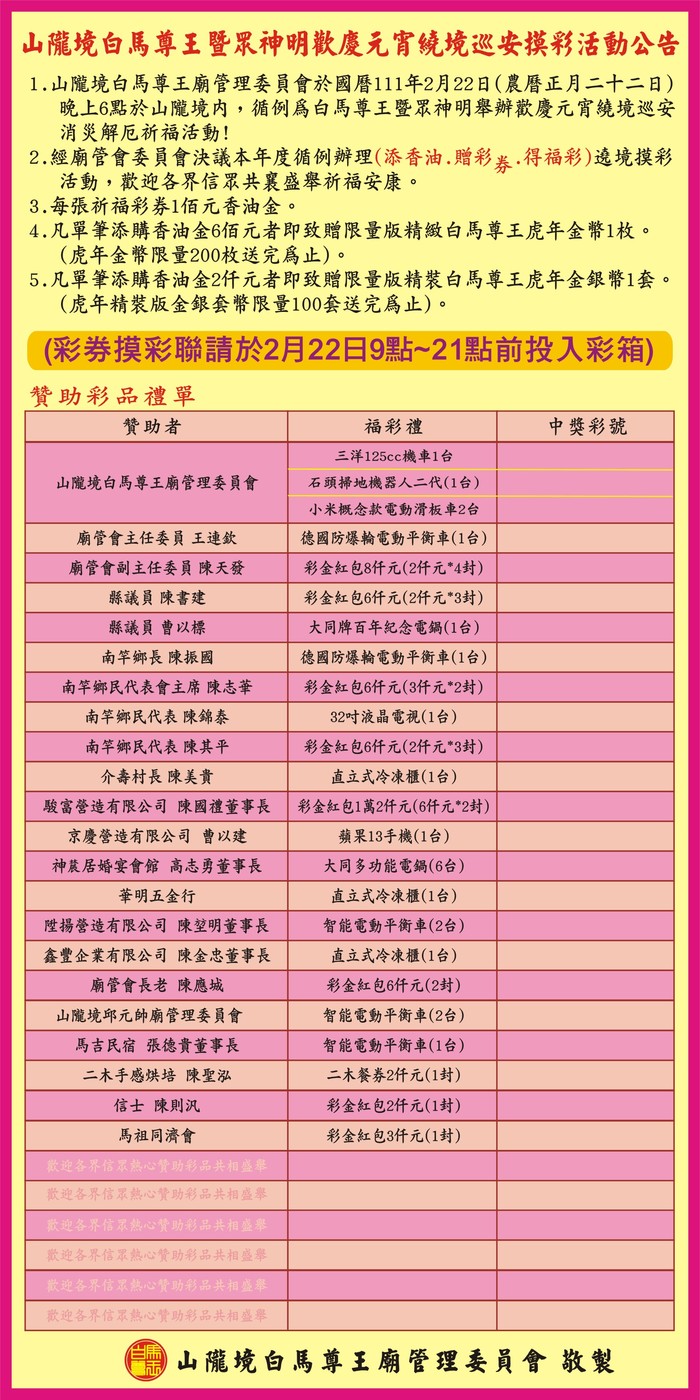 歡樂廿二暝 《添香油贈彩劵得福彩》