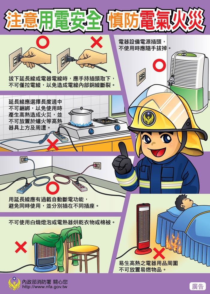 天氣寒冷需格外注意周遭環境,用火用電安全及防範一氧化碳中毒尤為重要。下列幾點您務必要遵守哦!~