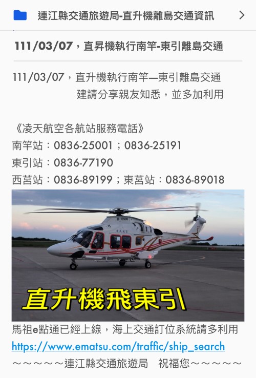 3/7南竿-東引直昇機航班