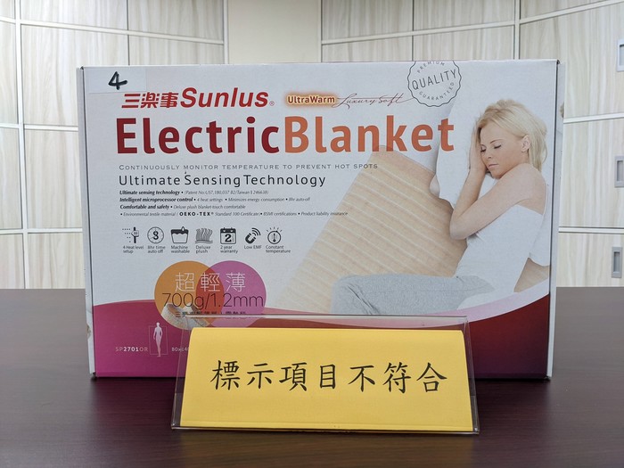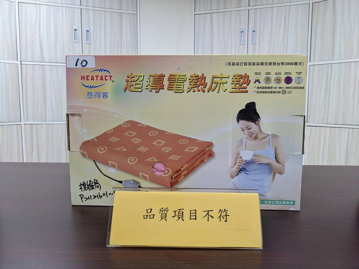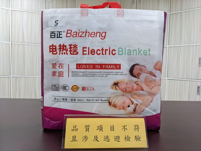 為瞭解市售「電熱毯」商品之安全性,行政院消費者保護處與經濟部標準檢驗局合作,110年於網路購物電商平台等販售通路,購買10件不同廠牌型號之電熱毯進行檢測,檢測結果不符合共計有3件,其中「品質項目」計有2件不符合規定,涉及逃避檢驗者計有1件,另標示項目計有1件不符合規定。