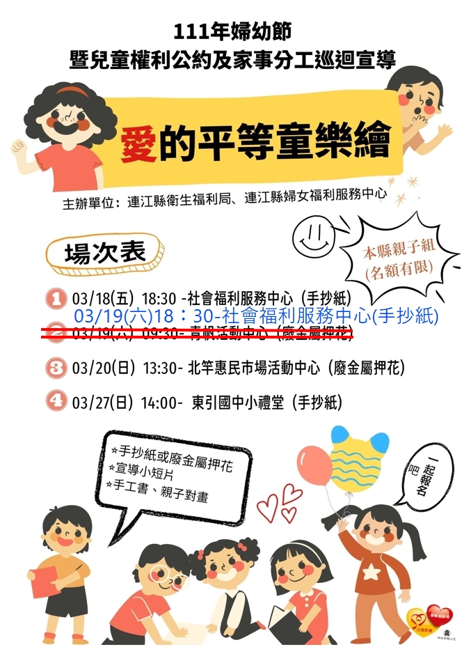 平等童樂繪~最新名單(時時刻刻更新! --閱讀人次 : 755 因莒光場無民眾報名,故取消該場次活動。