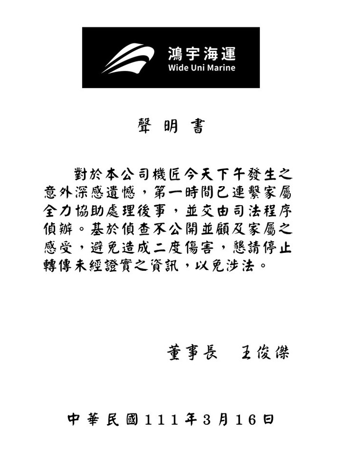 【鴻宇海運】聲明書 --閱讀人次 : 2651