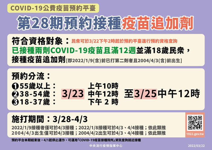 第28期疫苗追加劑預約接種