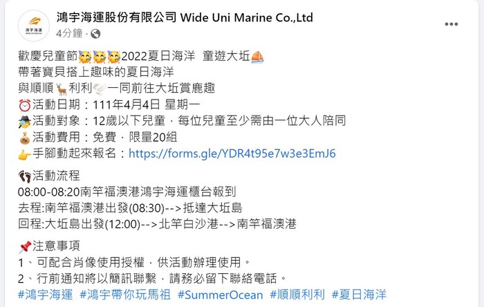 【鴻宇海運】夏日海洋童遊大坵 限量體驗