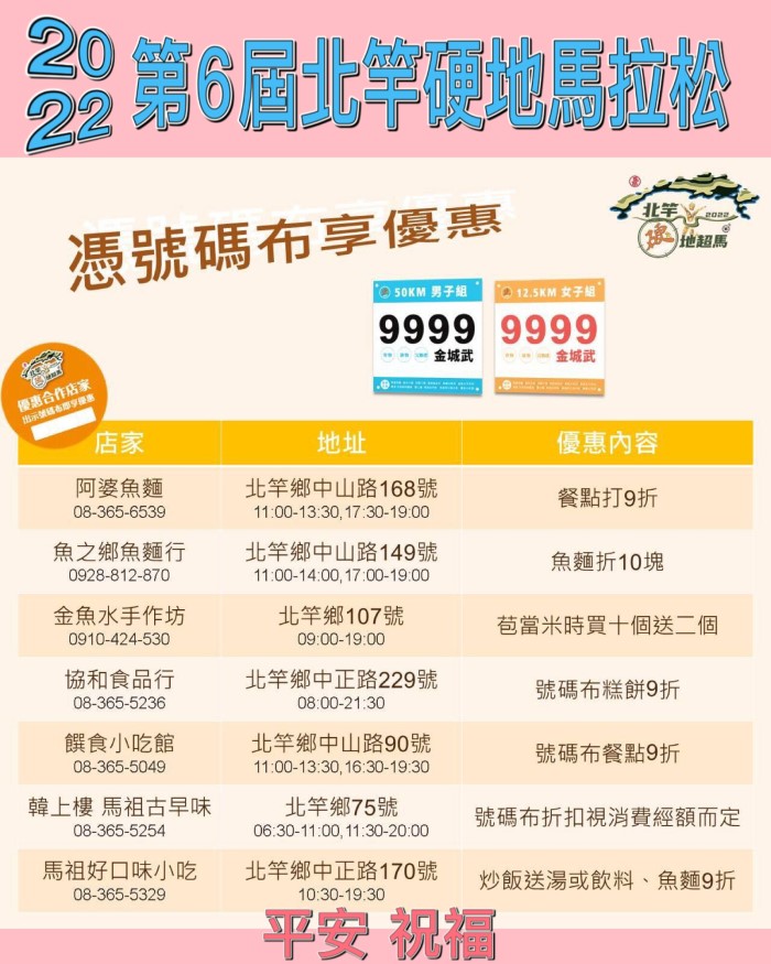 北竿硬地馬拉松選手優惠公告