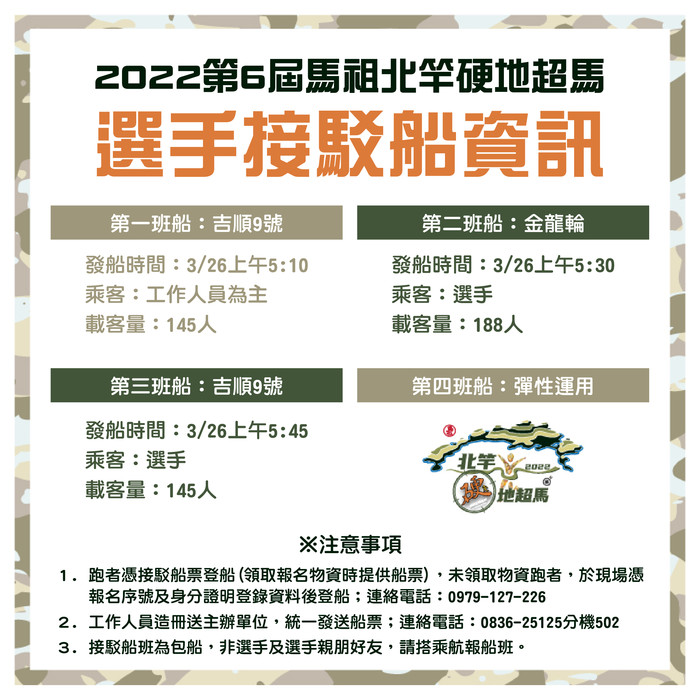 3月26日上午南竿至北竿接駁船資訊如下,敬請預先登記領取票卡。