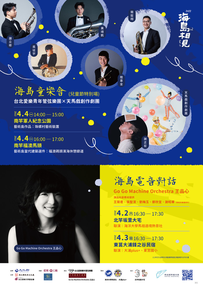 #文化部 #連江縣政府文化處 #財團法人台北愛樂文教基金會 #愛樂劇工廠 #小島旦 #台北愛樂青年管弦樂團 #天馬戲創作劇團 #GoGoMachineOrchestra王品心 #國立臺灣海洋大學馬祖校區 #連江縣東莒國小 #海洋大學熱音社 #大埔plus+ #馬祖國際藝術島 #文化馬祖
