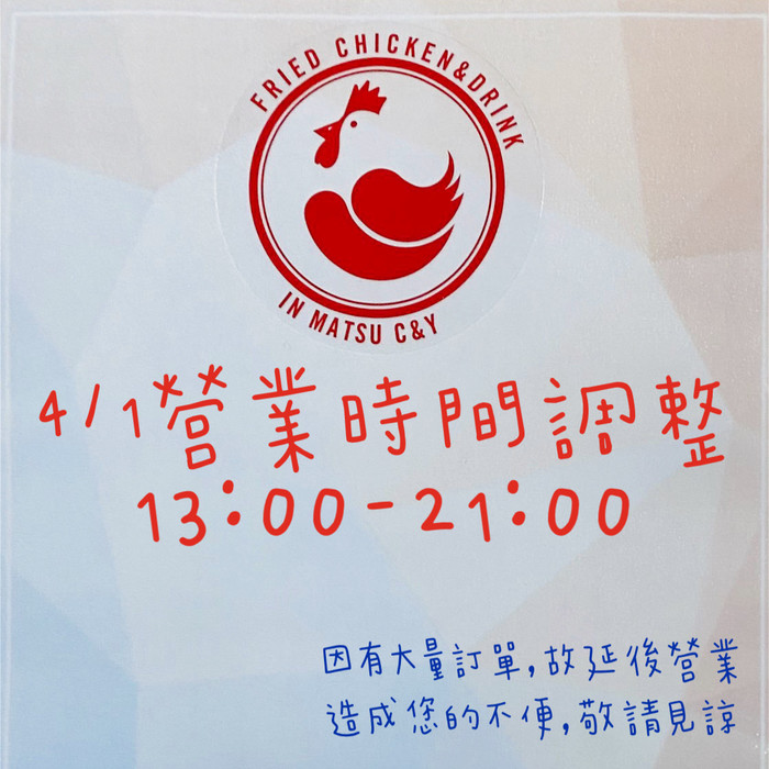 C&Y炸雞飲料專賣店4/1調整營業時間