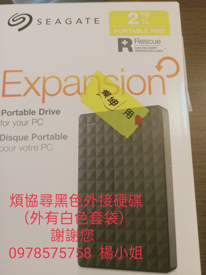 煩請協尋外接硬碟