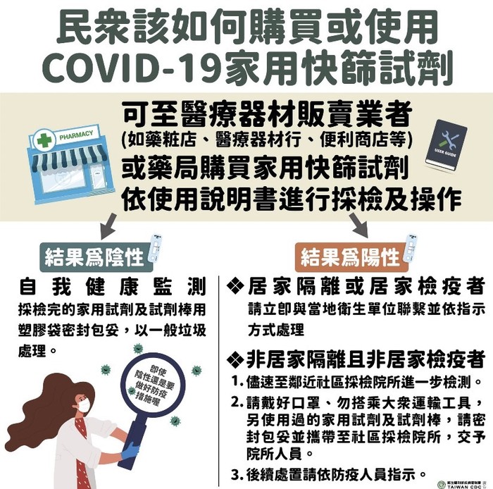 如結果為陽性者,請撥打本縣防疫專線0963-772160,有專人為您服務。同時請戴好口罩,請勿隨意移動及搭乘大眾運輸工具,等待防疫人員指示。