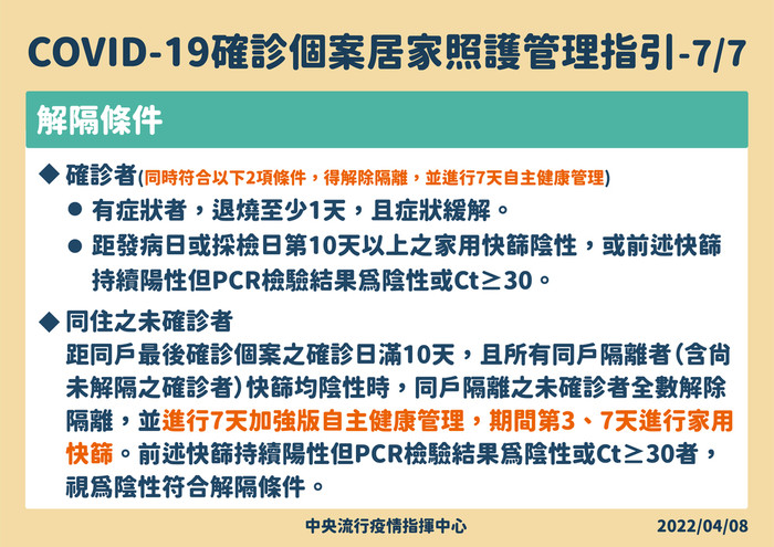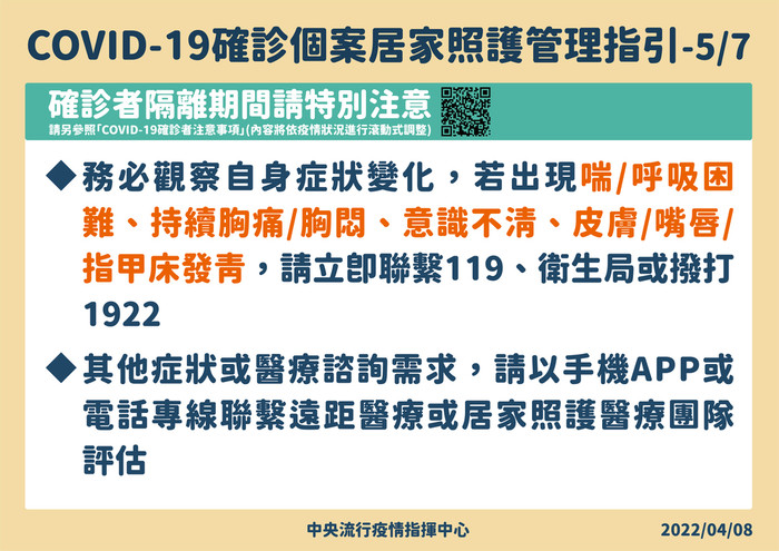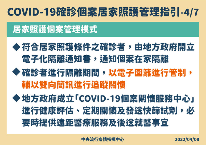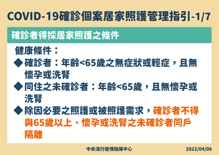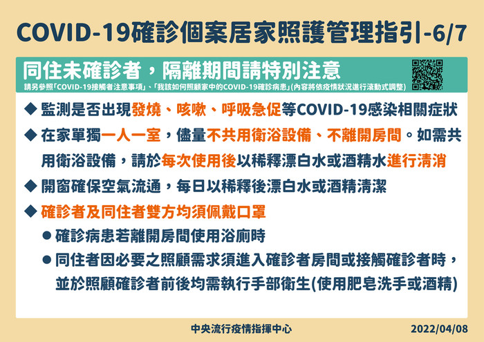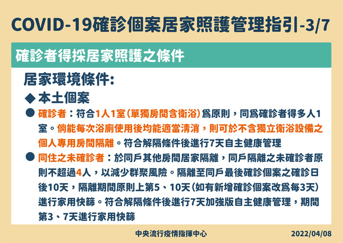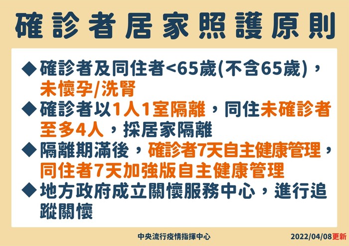 確診者的居家照護原則及管理指引