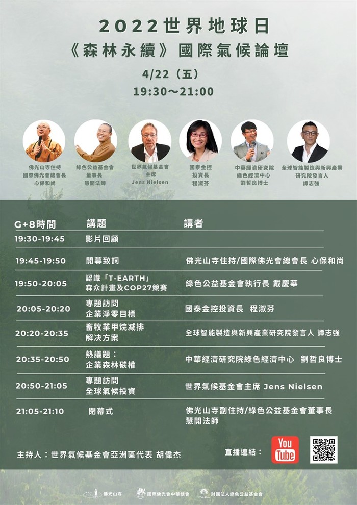 響應2022年森林永續線上國際論壇 --閱讀人次 : 604 國際佛光會馬祖分會