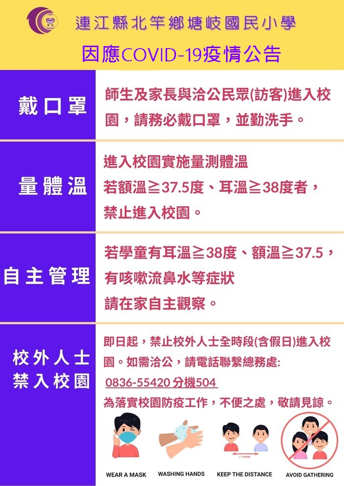 塘岐國小因應COVID-19防疫公告