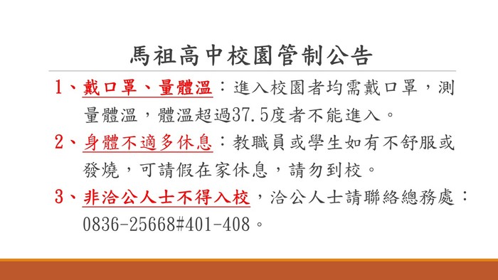 馬祖高中校園管制公告