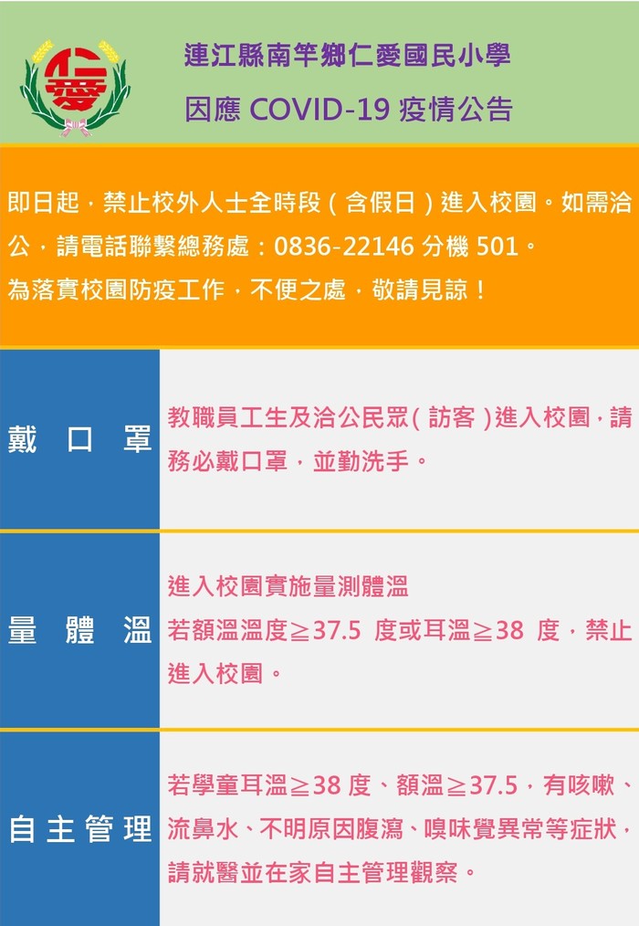 仁愛國小因應COVID-19防疫公告