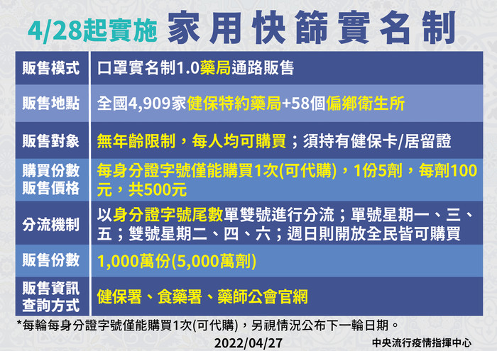 4/28起實施家用快篩實名制 --閱讀人次 : 1100 4/28起實施家用快篩實名制