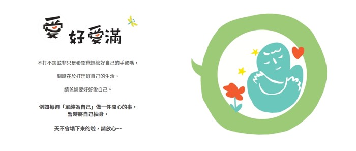 2.邀請民眾加入「建立一個不打小孩的國家」立約活動,立約即可獲贈《愛的手冊》,內容包含親職教養觀點及實用好方法。