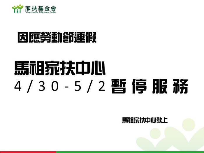 家扶-勞動節4/30-5/2暫停服務