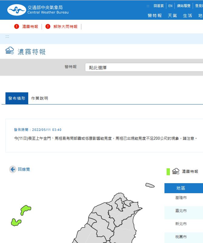 濃霧特報!今晨金門馬祖易有局部霧及低雲