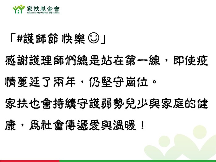 家扶-尊敬的護理師 護師節快樂