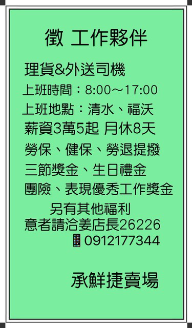 承鮮捷誠徵司機一名