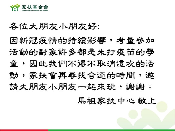 家扶-5/28兒保宣導活動取消