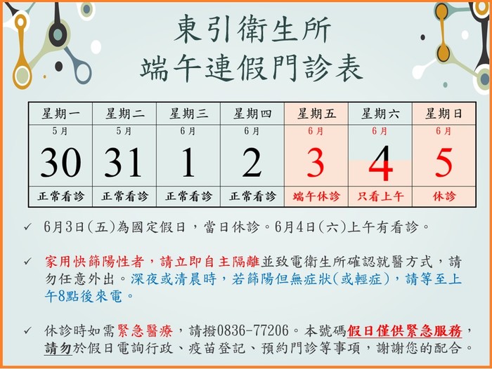 東引衛生所111年端午連假休診公告