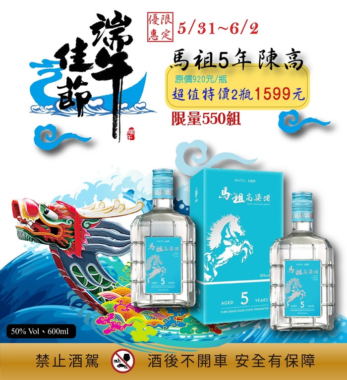 這次因應端午節,再推出 #50度5年陳年馬祖高粱酒 #優惠專案