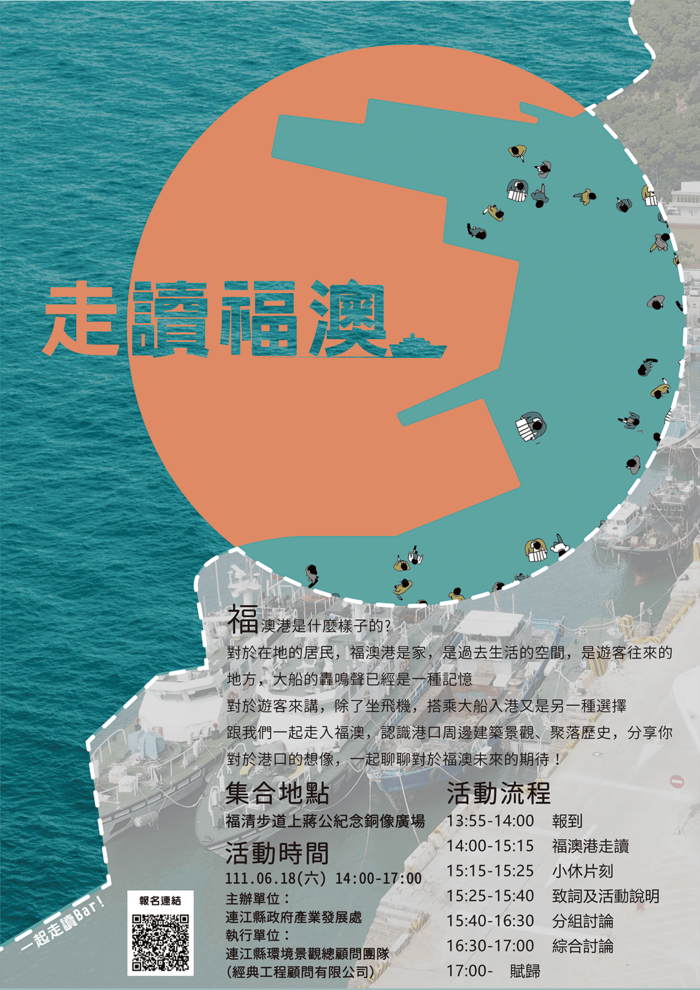 跟我們一起走入福澳,認識港口周邊建築景觀、聚落歷史,分享你對於港口的想像,一起聊聊對於福澳未來的期待!