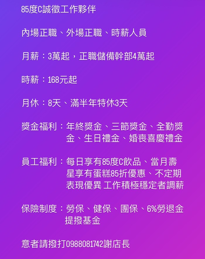 85度C誠徵工作夥伴