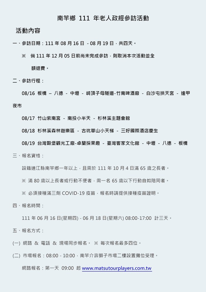 南竿鄉 111 年老人政經參訪活動
