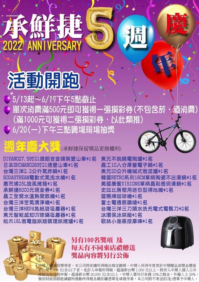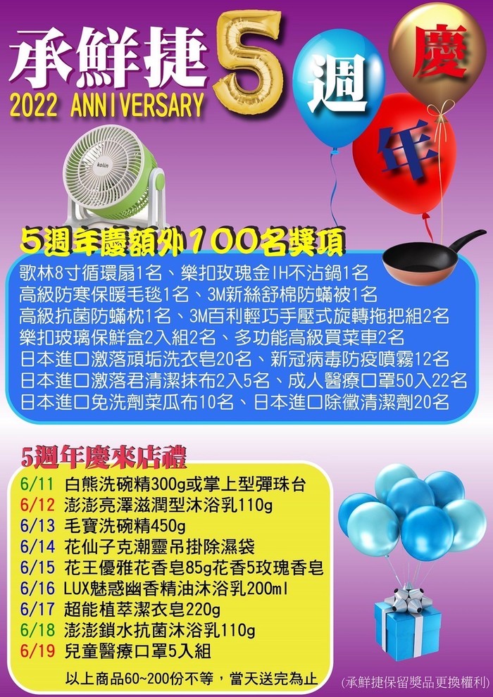 承鮮捷購物商場 5週年慶抽獎活動倒數囉!