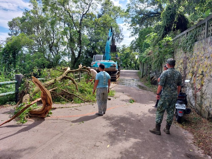 壁山本部連往上村路段,因強降雨導致邊坡土石滑落及路樹傾倒,本所已完成現場會勘並通知鄉內災害廠商現場處理,預計於下午5點左右完成清除作業,現場大型重機具清運會佔用半個車道,請往來車輛小心駕駛,北竿鄉公所關心您。