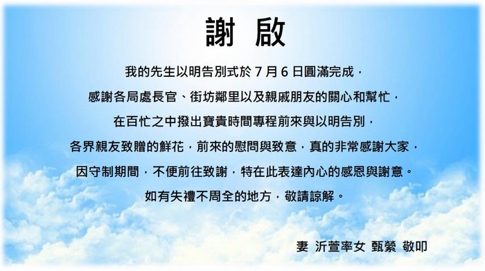 翁以明先生告別式圓滿,家屬謝啓
