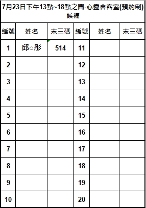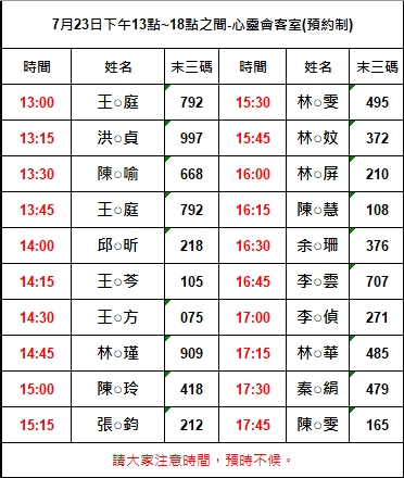 7月23日下午13點~18點之間-心靈會客室(預約制)