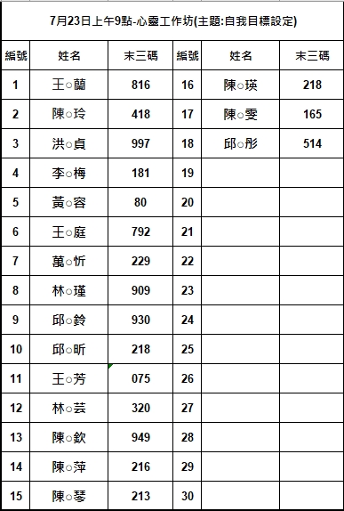 7月23日上午9點-心靈工作坊(主題:自我目標設定)