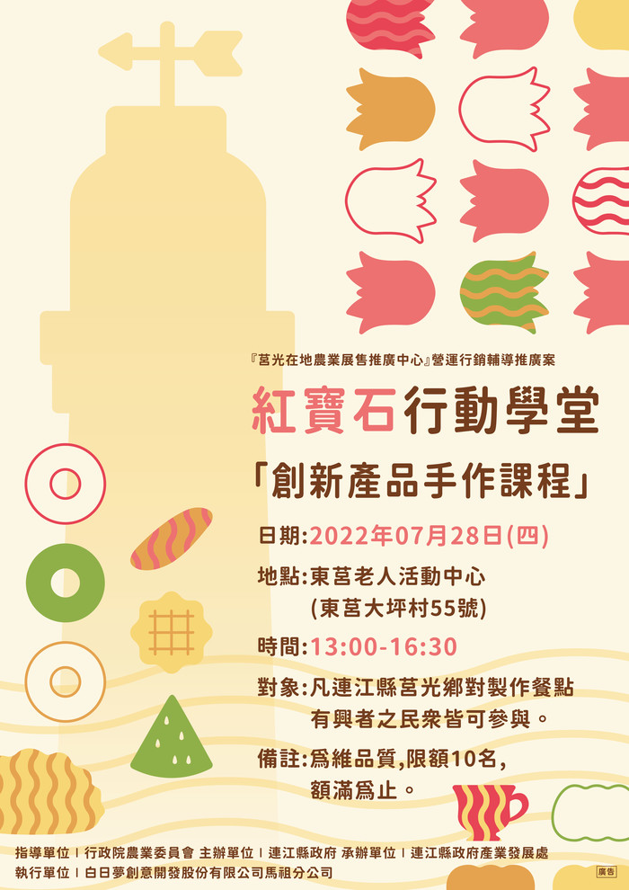➤ 指導單位/行政院農業委員會、主辦單位/連江縣政府、承辦單位/連江縣政府產業發展處、執行單位:白日夢創意開發股份有限公司馬祖分公司