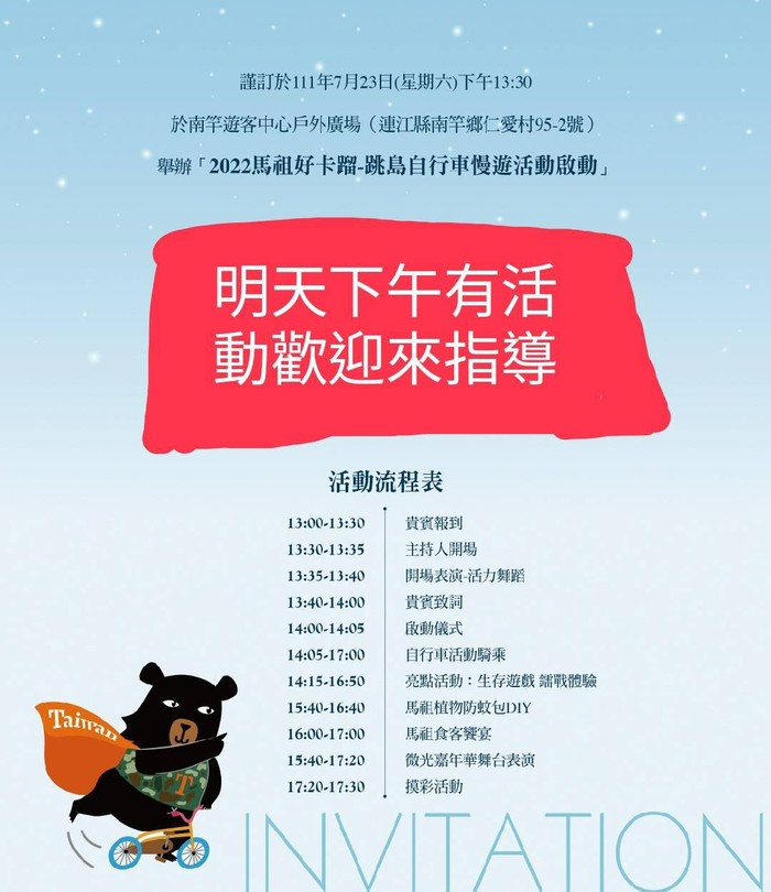 明天下午在南竿遊客中心戶外廣場有一系列活動喔!!!