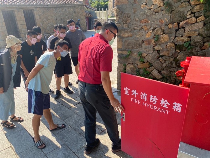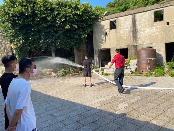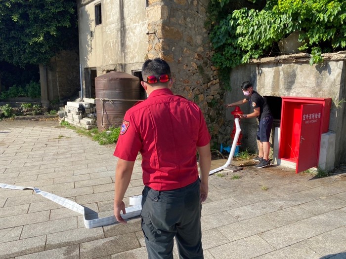 大浦聚落為連江縣4大聚落保存區之一,觀光客絡繹不絕,使得大浦傳統聚落的公共安全問題顯得格外重要,東莒消防分隊針對聚落做了更健全的火災搶救整體規劃,於昨日辦理防災宣導活動及演練,邀請聚落內居民、民宿業者、大浦PLUS+團隊、岸巡隊等一同參與演練,除了在大浦白馬尊王廟旁舉辦防災說明會外,並模擬火災情境實施自衛消防編組,指導與會人員操作設置在聚落內3支消防栓和2組水帶箱,所有演練人員均確實進行操演,充分展現克服聚落狹小巷弄救災困難特性,整個過程精實流暢,社區共同參與有效提升聚落災時應變能力,達到災時優先自助而後公助之目標,演練過程同時也吸引觀光遊客目光,藉本次演練期能喚起鄉親對住宅防火觀念的重視,並對居家防火工作隨時保持高度警覺心:如住宅用火災警報器安裝、用火用電相關安全注意事項、火場逃生觀念等。