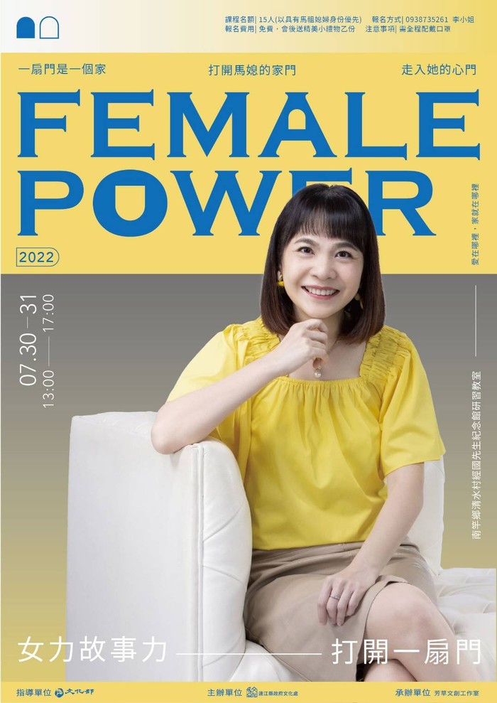 111年07月30日(六)-7月31日(日)下午13:00-17:00舉辦「女力故事力-打開一扇門」邀請仙女老師余懷瑾,連續兩天的課程,聆聽馬媳青春時期對於原鄉的記憶,到嫁到馬祖的適應過程。有趣的,可愛的,用力的,用心的故事。她們如何用原鄉的語言教養孩子、如何融入馬祖的群體生活,從婚後多重身分的轉變,是媳婦、母親、太太,通常在女性婚後停止成長的主要原因,大多是因為家庭跟孩子。