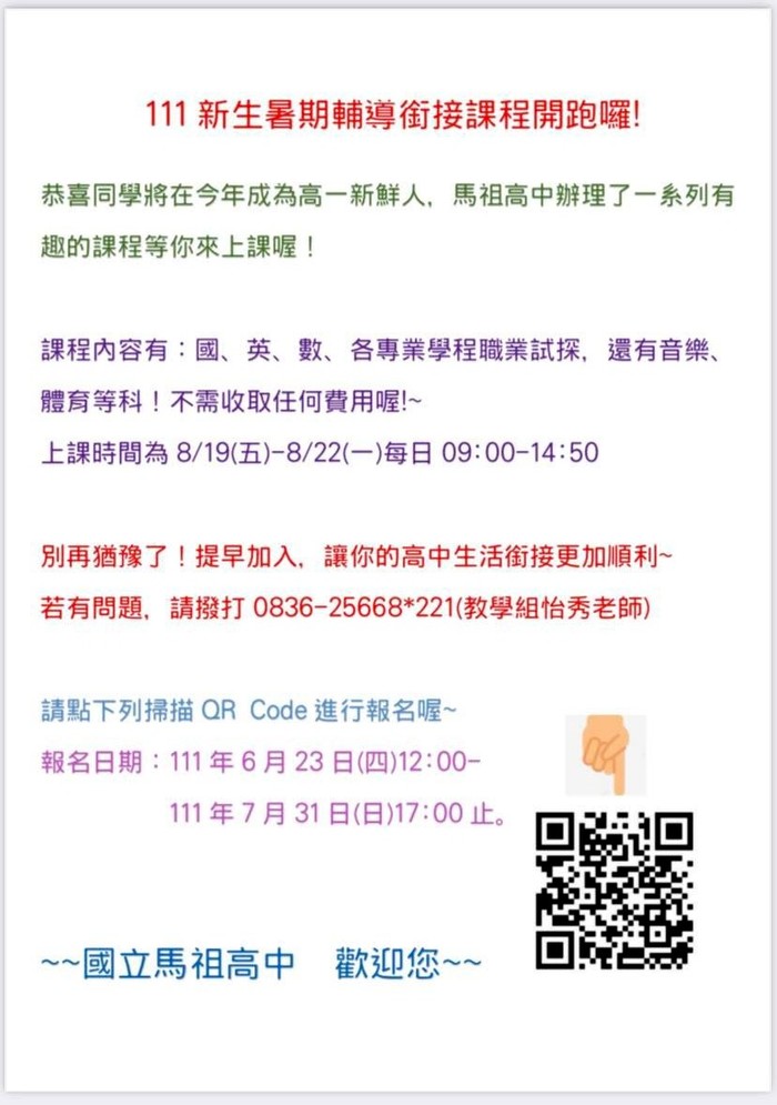 馬祖高中新生暑期輔導銜接課程開跑