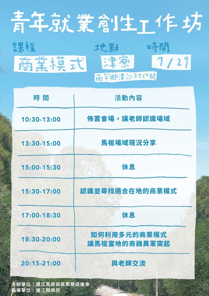 為返鄉、留鄉、移居的年輕人提升工作認知,結合時下重點推動議題,進而增加就業機會,提高創業成功率。免費參加,會場備有茶水,歡迎大家參與!