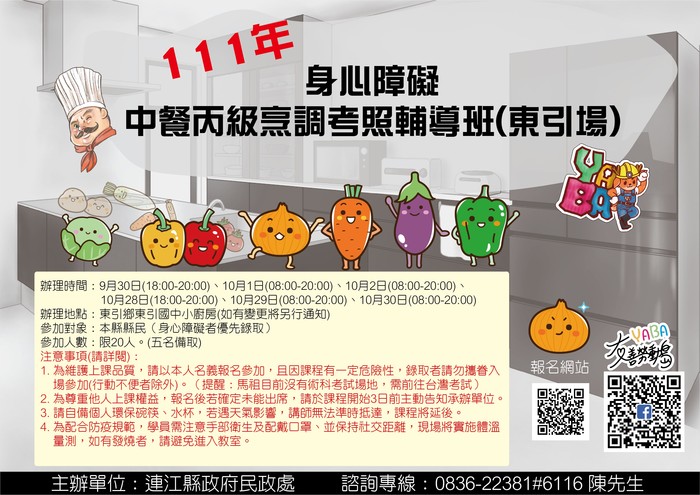 身障中餐丙級烹調考照輔導班(東引)