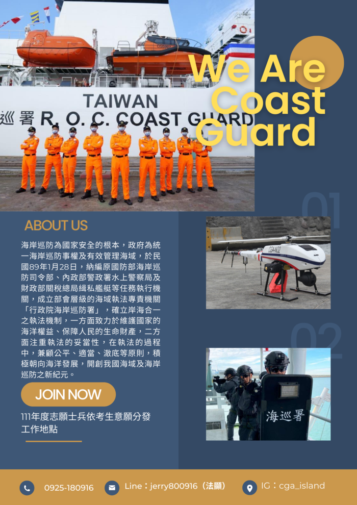 海巡署111年度軍職人員招募,薪資穩定,福利有保障~ --閱讀人次 : 2374 【公司名稱】行政院海洋委員會海巡署