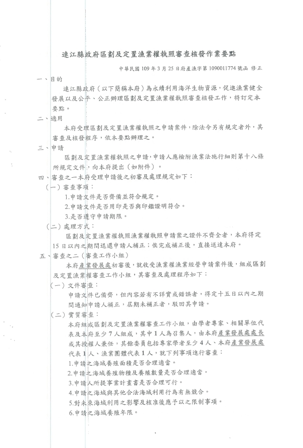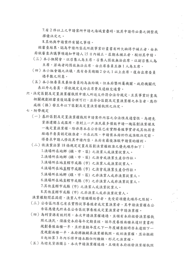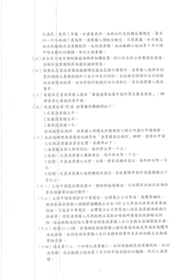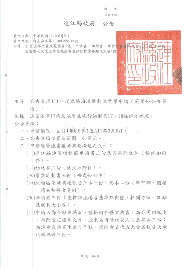 受理111年度本縣海域區劃漁業權申請
