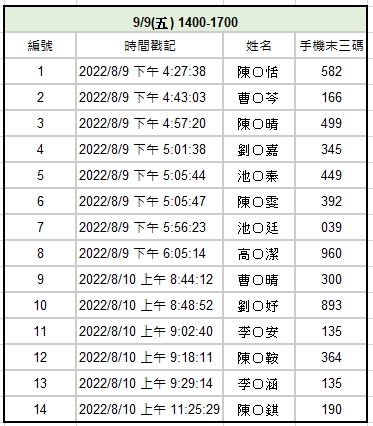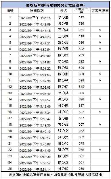 如遞補於加場次者或原時段無法參與者,請於8/24前來電告知,把機會讓給候補。
