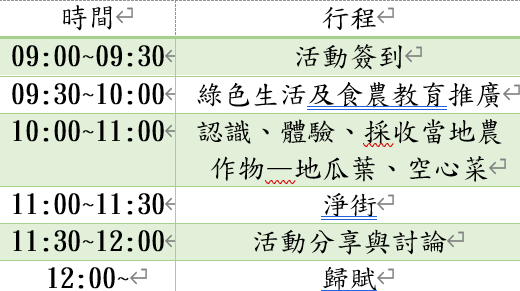 *請於9:00~9:30報到,9:30集合後前往菜園,逾時不候